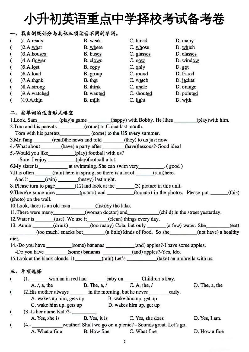 《小升初英语重点中学择校考试备考卷》明哥2025年6月26日 12:37更新关注私信02715 ——预览已结束,还剩4页未读——开通会员后可免费下载高清完整文档 温馨提示:本文最后更新于2025-06-26 12:37:24,某些文章具有时效性,若有错误或已失效,请在下方留言或联系站长。 《小升初英语重点中学择校考试备考卷》此内容为付费资源,请付费后查看¥4.9SVIP免费立即购买您当前未登录!建议登陆后购买,可保存购买订单网络收集虚拟资源自动发货永久使用付费资源已售 67© 版权声明 1 如果您喜欢本站,开通会员赞助下本站,感谢支持! 2 可能会帮助到你: 下载帮助 | 报毒说明 | 进站必看 | 广告合作; 3 本站素材资源不代表本站立场,并不代表本站赞同其观点和对其真实性负责; 4 本站大部分素材资源来源于网络,仅供学习与参考,请于下载后24小时内删除; 5 若作商业用途,请联系原作者授权,若本站侵犯了您的权益请 联系站长 进行删除处理; 6 如若转载,请注明文章出处: THE END英语 喜欢就支持一下吧点赞15 分享QQ空间微博QQ好友海报分享复制链接收藏