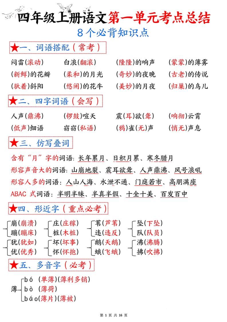 四年级语文上册1-8单元考点总结(8个必背知识点)明哥2025年6月28日 10:18更新关注私信02816 ——预览已结束,还剩30页未读——开通会员后可免费下载高清完整文档 温馨提示:本文最后更新于2025-06-28 10:18:18,某些文章具有时效性,若有错误或已失效,请在下方留言或联系站长。 四年级语文上册1-8单元考点总结(8个必背知识点)此内容为付费资源,请付费后查看¥4.9SVIP免费立即购买您当前未登录!建议登陆后购买,可保存购买订单网络收集虚拟资源自动发货永久使用付费资源已售 59© 版权声明 1 如果您喜欢本站,开通会员赞助下本站,感谢支持! 2 可能会帮助到你: 下载帮助 | 报毒说明 | 进站必看 | 广告合作; 3 本站素材资源不代表本站立场,并不代表本站赞同其观点和对其真实性负责; 4 本站大部分素材资源来源于网络,仅供学习与参考,请于下载后24小时内删除; 5 若作商业用途,请联系原作者授权,若本站侵犯了您的权益请 联系站长 进行删除处理; 6 如若转载,请注明文章出处: THE END语文 喜欢就支持一下吧点赞16 分享QQ空间微博QQ好友海报分享复制链接收藏
