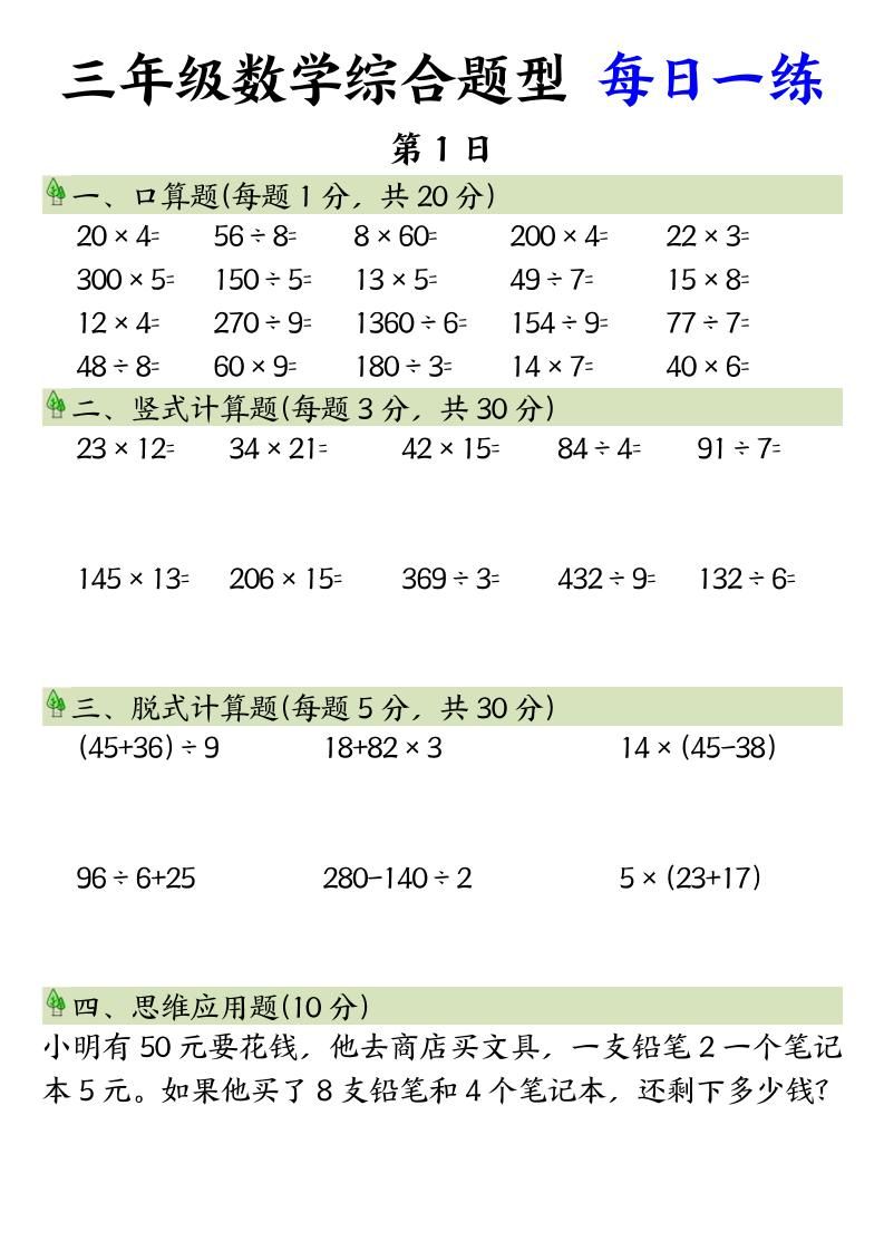三年级数学综合题型+每日一练三下数学明哥2025年6月30日 12:17更新关注私信02514 ——预览已结束,还剩6页未读——开通会员后可免费下载高清完整文档 温馨提示:本文最后更新于2025-06-30 12:17:44,某些文章具有时效性,若有错误或已失效,请在下方留言或联系站长。 三年级数学综合题型+每日一练三下数学此内容为付费资源,请付费后查看¥4.9SVIP免费立即购买您当前未登录!建议登陆后购买,可保存购买订单网络收集虚拟资源自动发货永久使用付费资源已售 54© 版权声明 1 如果您喜欢本站,开通会员赞助下本站,感谢支持! 2 可能会帮助到你: 下载帮助 | 报毒说明 | 进站必看 | 广告合作; 3 本站素材资源不代表本站立场,并不代表本站赞同其观点和对其真实性负责; 4 本站大部分素材资源来源于网络,仅供学习与参考,请于下载后24小时内删除; 5 若作商业用途,请联系原作者授权,若本站侵犯了您的权益请 联系站长 进行删除处理; 6 如若转载,请注明文章出处: THE END数学 喜欢就支持一下吧点赞14 分享QQ空间微博QQ好友海报分享复制链接收藏