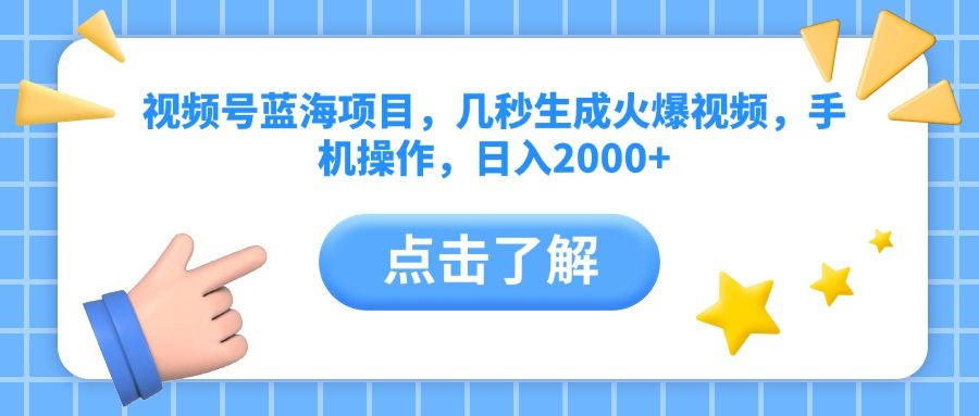 视频号蓝海项目,几秒生成火爆视频,手机操作,日入2000+vv明哥2025年7月3日 22:01发布关注私信0396 项目介绍 视频号蓝海项目,几秒生成火爆视频,手机操作,日入2000+ 课程目录 项目介绍 准备工作 项目实操 多种变现 温馨提示:本文最后更新于2025-07-03 22:01:33,某些文章具有时效性,若有错误或已失效,请在下方留言或联系站长。 视频号蓝海项目,几秒生成火爆视频,手机操作,日入2000+vv此内容为付费资源,请付费后查看¥9.9¥29.9SVIP免费立即购买您当前未登录!建议登陆后购买,可保存购买订单网络收集虚拟资源自动发货永久使用付费资源© 版权声明 1 如果您喜欢本站,开通会员赞助下本站,感谢支持! 2 可能会帮助到你: 下载帮助 | 报毒说明 | 进站必看 | 广告合作; 3 本站素材资源不代表本站立场,并不代表本站赞同其观点和对其真实性负责; 4 本站大部分素材资源来源于网络,仅供学习与参考,请于下载后24小时内删除; 5 若作商业用途,请联系原作者授权,若本站侵犯了您的权益请 联系站长 进行删除处理; 6 如若转载,请注明文章出处: THE END做项目网创项目 喜欢就支持一下吧点赞6 分享QQ空间微博QQ好友海报分享复制链接收藏