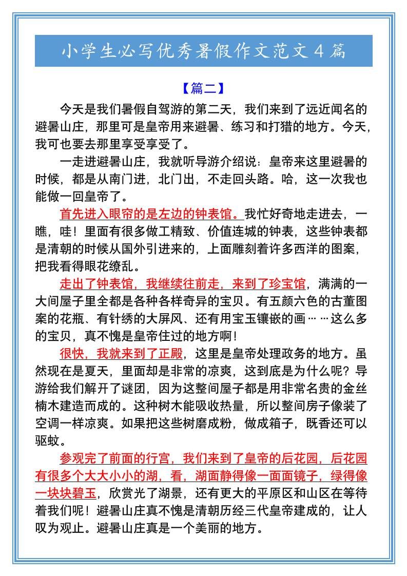 小学生必写优秀暑假作文范文4篇-小升初语文明哥2025年7月4日 06:04更新关注私信03214 ——预览已结束,还剩2页未读——开通会员后可免费下载高清完整文档 温馨提示:本文最后更新于2025-07-04 06:04:31,某些文章具有时效性,若有错误或已失效,请在下方留言或联系站长。 小学生必写优秀暑假作文范文4篇-小升初语文此内容为付费资源,请付费后查看¥4.9SVIP免费立即购买您当前未登录!建议登陆后购买,可保存购买订单网络收集虚拟资源自动发货永久使用付费资源已售 64© 版权声明 1 如果您喜欢本站,开通会员赞助下本站,感谢支持! 2 可能会帮助到你: 下载帮助 | 报毒说明 | 进站必看 | 广告合作; 3 本站素材资源不代表本站立场,并不代表本站赞同其观点和对其真实性负责; 4 本站大部分素材资源来源于网络,仅供学习与参考,请于下载后24小时内删除; 5 若作商业用途,请联系原作者授权,若本站侵犯了您的权益请 联系站长 进行删除处理; 6 如若转载,请注明文章出处: THE END语文 喜欢就支持一下吧点赞14 分享QQ空间微博QQ好友海报分享复制链接收藏