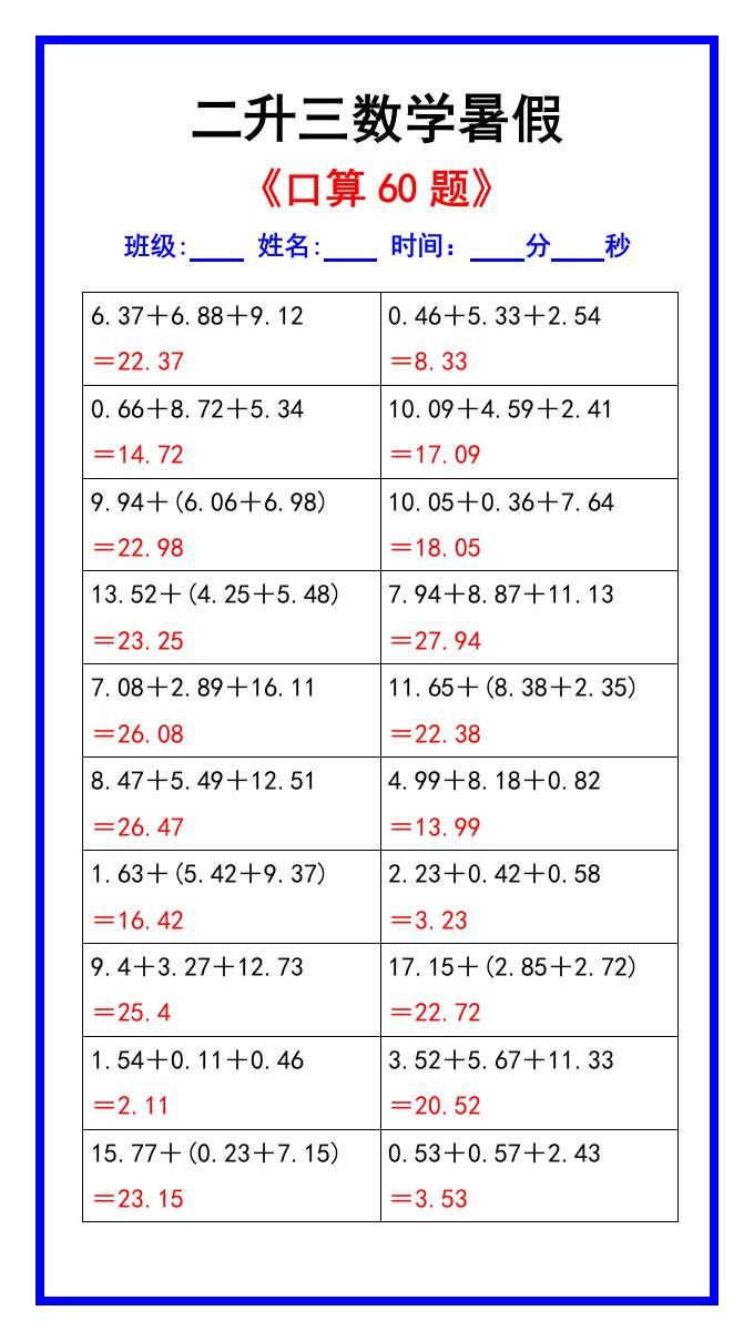 二升三数学暑假《口算练习60题》汇总-三上数学明哥2025年7月6日 02:01更新关注私信03013 ——预览已结束,还剩2页未读——开通会员后可免费下载高清完整文档 温馨提示:本文最后更新于2025-07-06 02:01:43,某些文章具有时效性,若有错误或已失效,请在下方留言或联系站长。 二升三数学暑假《口算练习60题》汇总-三上数学此内容为付费资源,请付费后查看¥4.9SVIP免费立即购买您当前未登录!建议登陆后购买,可保存购买订单网络收集虚拟资源自动发货永久使用付费资源已售 65© 版权声明 1 如果您喜欢本站,开通会员赞助下本站,感谢支持! 2 可能会帮助到你: 下载帮助 | 报毒说明 | 进站必看 | 广告合作; 3 本站素材资源不代表本站立场,并不代表本站赞同其观点和对其真实性负责; 4 本站大部分素材资源来源于网络,仅供学习与参考,请于下载后24小时内删除; 5 若作商业用途,请联系原作者授权,若本站侵犯了您的权益请 联系站长 进行删除处理; 6 如若转载,请注明文章出处: THE END数学 喜欢就支持一下吧点赞13 分享QQ空间微博QQ好友海报分享复制链接收藏
