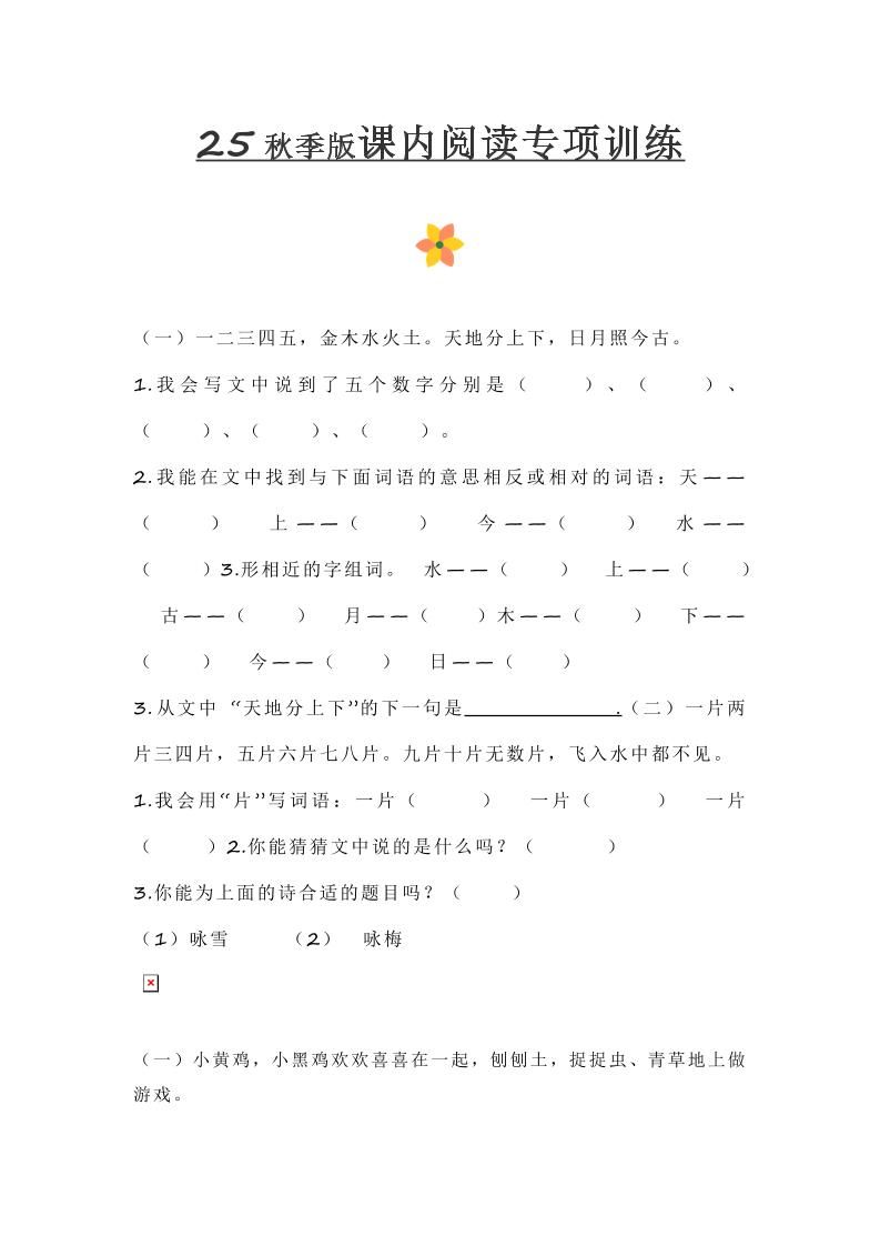 【2025秋新版】小学一年级上册语文课内阅读训练明哥2025年7月28日 06:01更新关注私信03514 ——预览已结束,还剩10页未读——开通会员后可免费下载高清完整文档 温馨提示:本文最后更新于2025-07-28 06:01:40,某些文章具有时效性,若有错误或已失效,请在下方留言或联系站长。 【2025秋新版】小学一年级上册语文课内阅读训练此内容为付费资源,请付费后查看¥4.9SVIP免费立即购买您当前未登录!建议登陆后购买,可保存购买订单网络收集虚拟资源自动发货永久使用付费资源已售 67© 版权声明 1 如果您喜欢本站,开通会员赞助下本站,感谢支持! 2 可能会帮助到你: 下载帮助 | 报毒说明 | 进站必看 | 广告合作; 3 本站素材资源不代表本站立场,并不代表本站赞同其观点和对其真实性负责; 4 本站大部分素材资源来源于网络,仅供学习与参考,请于下载后24小时内删除; 5 若作商业用途,请联系原作者授权,若本站侵犯了您的权益请 联系站长 进行删除处理; 6 如若转载,请注明文章出处: THE END语文 喜欢就支持一下吧点赞14 分享QQ空间微博QQ好友海报分享复制链接收藏