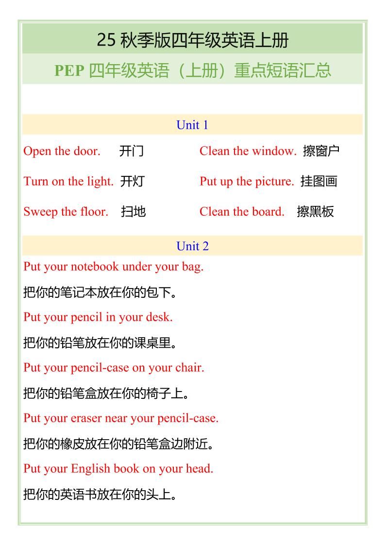 【2025秋新版】四年级英语上册重点短语汇总明哥2025年8月10日 06:06更新关注私信03212 ——预览已结束,还剩1页未读——开通会员后可免费下载高清完整文档 温馨提示:本文最后更新于2025-08-10 06:06:01,某些文章具有时效性,若有错误或已失效,请在下方留言或联系站长。 【2025秋新版】四年级英语上册重点短语汇总此内容为付费资源,请付费后查看¥4.9SVIP免费立即购买您当前未登录!建议登陆后购买,可保存购买订单网络收集虚拟资源自动发货永久使用付费资源已售 62© 版权声明 1 如果您喜欢本站,开通会员赞助下本站,感谢支持! 2 可能会帮助到你: 下载帮助 | 报毒说明 | 进站必看 | 广告合作; 3 本站素材资源不代表本站立场,并不代表本站赞同其观点和对其真实性负责; 4 本站大部分素材资源来源于网络,仅供学习与参考,请于下载后24小时内删除; 5 若作商业用途,请联系原作者授权,若本站侵犯了您的权益请 联系站长 进行删除处理; 6 如若转载,请注明文章出处: THE END英语 喜欢就支持一下吧点赞12 分享QQ空间微博QQ好友海报分享复制链接收藏