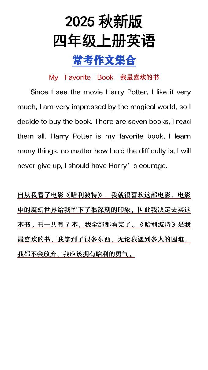 【2025秋新版】四年级上册英语常考作文合集明哥2025年8月29日 06:02更新关注私信03612 ——预览已结束,还剩3页未读——开通会员后可免费下载高清完整文档 温馨提示:本文最后更新于2025-08-29 06:02:34,某些文章具有时效性,若有错误或已失效,请在下方留言或联系站长。 【2025秋新版】四年级上册英语常考作文合集此内容为付费资源,请付费后查看¥4.9SVIP免费立即购买您当前未登录!建议登陆后购买,可保存购买订单网络收集虚拟资源自动发货永久使用付费资源已售 68© 版权声明 1 如果您喜欢本站,开通会员赞助下本站,感谢支持! 2 可能会帮助到你: 下载帮助 | 报毒说明 | 进站必看 | 广告合作; 3 本站素材资源不代表本站立场,并不代表本站赞同其观点和对其真实性负责; 4 本站大部分素材资源来源于网络,仅供学习与参考,请于下载后24小时内删除; 5 若作商业用途,请联系原作者授权,若本站侵犯了您的权益请 联系站长 进行删除处理; 6 如若转载,请注明文章出处: THE END英语 喜欢就支持一下吧点赞12 分享QQ空间微博QQ好友海报分享复制链接收藏