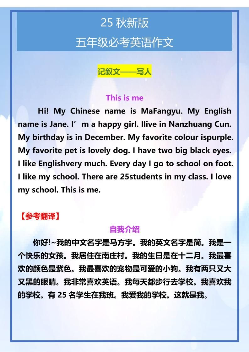【2025秋新版】五年级必考英语作文范文-五上英语明哥2025年8月30日 06:02更新关注私信03716 ——预览已结束,还剩3页未读——开通会员后可免费下载高清完整文档 温馨提示:本文最后更新于2025-08-30 06:02:33,某些文章具有时效性,若有错误或已失效,请在下方留言或联系站长。 【2025秋新版】五年级必考英语作文范文-五上英语此内容为付费资源,请付费后查看¥4.9SVIP免费立即购买您当前未登录!建议登陆后购买,可保存购买订单网络收集虚拟资源自动发货永久使用付费资源已售 71© 版权声明 1 如果您喜欢本站,开通会员赞助下本站,感谢支持! 2 可能会帮助到你: 下载帮助 | 报毒说明 | 进站必看 | 广告合作; 3 本站素材资源不代表本站立场,并不代表本站赞同其观点和对其真实性负责; 4 本站大部分素材资源来源于网络,仅供学习与参考,请于下载后24小时内删除; 5 若作商业用途,请联系原作者授权,若本站侵犯了您的权益请 联系站长 进行删除处理; 6 如若转载,请注明文章出处: THE END英语 喜欢就支持一下吧点赞16 分享QQ空间微博QQ好友海报分享复制链接收藏