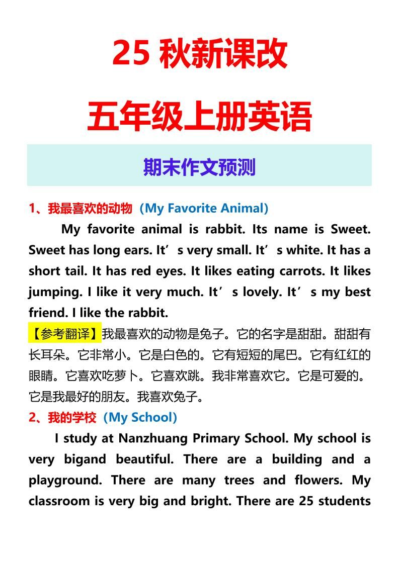 【2025秋新版】五年级上册英语期末作文预测明哥2025年8月30日 10:26更新关注私信03417 ——预览已结束,还剩2页未读——开通会员后可免费下载高清完整文档 温馨提示:本文最后更新于2025-08-30 10:26:59,某些文章具有时效性,若有错误或已失效,请在下方留言或联系站长。 【2025秋新版】五年级上册英语期末作文预测此内容为付费资源,请付费后查看¥4.9SVIP免费立即购买您当前未登录!建议登陆后购买,可保存购买订单网络收集虚拟资源自动发货永久使用付费资源已售 50© 版权声明 1 如果您喜欢本站,开通会员赞助下本站,感谢支持! 2 可能会帮助到你: 下载帮助 | 报毒说明 | 进站必看 | 广告合作; 3 本站素材资源不代表本站立场,并不代表本站赞同其观点和对其真实性负责; 4 本站大部分素材资源来源于网络,仅供学习与参考,请于下载后24小时内删除; 5 若作商业用途,请联系原作者授权,若本站侵犯了您的权益请 联系站长 进行删除处理; 6 如若转载,请注明文章出处: THE END英语 喜欢就支持一下吧点赞17 分享QQ空间微博QQ好友海报分享复制链接收藏