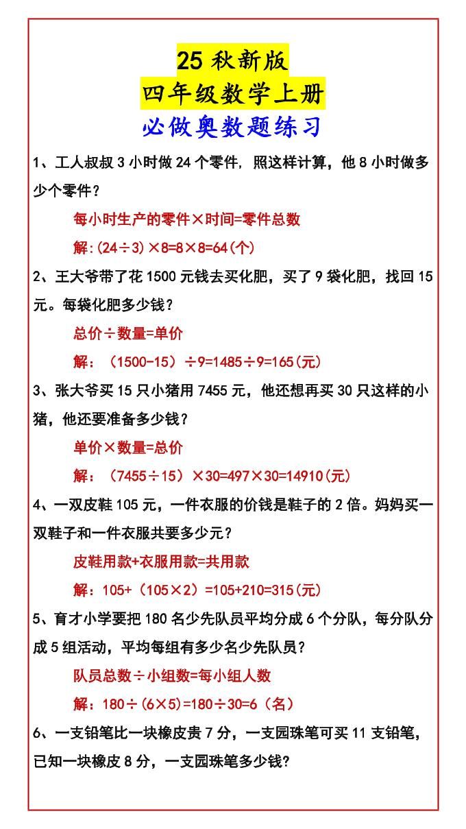【2025秋新版】四年级数学上册必做奥数题练习明哥2025年8月31日 08:01更新关注私信03213 ——预览已结束,还剩9页未读——开通会员后可免费下载高清完整文档 温馨提示:本文最后更新于2025-08-31 08:01:53,某些文章具有时效性,若有错误或已失效,请在下方留言或联系站长。 【2025秋新版】四年级数学上册必做奥数题练习此内容为付费资源,请付费后查看¥4.9SVIP免费立即购买您当前未登录!建议登陆后购买,可保存购买订单网络收集虚拟资源自动发货永久使用付费资源已售 53© 版权声明 1 如果您喜欢本站,开通会员赞助下本站,感谢支持! 2 可能会帮助到你: 下载帮助 | 报毒说明 | 进站必看 | 广告合作; 3 本站素材资源不代表本站立场,并不代表本站赞同其观点和对其真实性负责; 4 本站大部分素材资源来源于网络,仅供学习与参考,请于下载后24小时内删除; 5 若作商业用途,请联系原作者授权,若本站侵犯了您的权益请 联系站长 进行删除处理; 6 如若转载,请注明文章出处: THE END数学 喜欢就支持一下吧点赞13 分享QQ空间微博QQ好友海报分享复制链接收藏