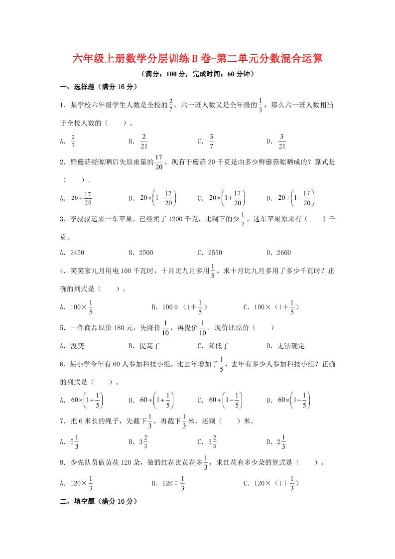 六年级上北师版数学第二单元分数混合运算单元测试B卷明哥2025年10月22日 14:07更新关注私信03213 ——预览已结束,还剩17页未读——您已获得此文档下载权限,请点击底部下载完整文档 温馨提示:本文最后更新于2025-10-22 14:07:48,某些文章具有时效性,若有错误或已失效,请在下方留言或联系站长。 六年级上北师版数学第二单元分数混合运算单元测试B卷此内容为付费资源,请付费后查看¥4.9SVIP免费立即购买您当前未登录!建议登陆后购买,可保存购买订单网络收集虚拟资源自动发货永久使用付费资源已售 58© 版权声明 1 如果您喜欢本站,开通会员赞助下本站,感谢支持! 2 可能会帮助到你: 下载帮助 | 报毒说明 | 进站必看 | 广告合作; 3 本站素材资源不代表本站立场,并不代表本站赞同其观点和对其真实性负责; 4 本站大部分素材资源来源于网络,仅供学习与参考,请于下载后24小时内删除; 5 若作商业用途,请联系原作者授权,若本站侵犯了您的权益请 联系站长 进行删除处理; 6 如若转载,请注明文章出处: THE END数学 喜欢就支持一下吧点赞13 分享QQ空间微博QQ好友海报分享复制链接收藏