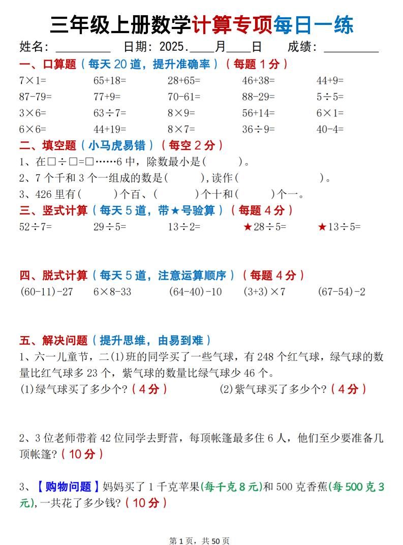 三上数学计算专项每日一练50天(口算填空竖式脱式解决问题思维题)50页明哥2025年10月27日 08:02更新关注私信02612 ——预览已结束,还剩48页未读——您已获得此文档下载权限,请点击底部下载完整文档 温馨提示:本文最后更新于2025-10-27 08:02:55,某些文章具有时效性,若有错误或已失效,请在下方留言或联系站长。 三上数学计算专项每日一练50天(口算填空竖式脱式解决问题思维题)50页此内容为付费资源,请付费后查看¥4.9SVIP免费立即购买您当前未登录!建议登陆后购买,可保存购买订单网络收集虚拟资源自动发货永久使用付费资源已售 57© 版权声明 1 如果您喜欢本站,开通会员赞助下本站,感谢支持! 2 可能会帮助到你: 下载帮助 | 报毒说明 | 进站必看 | 广告合作; 3 本站素材资源不代表本站立场,并不代表本站赞同其观点和对其真实性负责; 4 本站大部分素材资源来源于网络,仅供学习与参考,请于下载后24小时内删除; 5 若作商业用途,请联系原作者授权,若本站侵犯了您的权益请 联系站长 进行删除处理; 6 如若转载,请注明文章出处: THE END数学 喜欢就支持一下吧点赞12 分享QQ空间微博QQ好友海报分享复制链接收藏