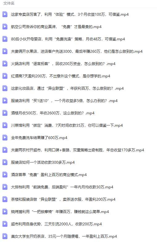 真实有效391套商业模式,年入几十到几百万案例解析(电子书+视频+图文)明哥2024年3月26日 03:00发布关注私信0209 部分课程目录截图 温馨提示:本文最后更新于2024-03-26 03:00:00,某些文章具有时效性,若有错误或已失效,请在下方留言或联系站长。 真实有效391套商业模式,年入几十到几百万案例解析(电子书+视频+图文)此内容为付费资源,请付费后查看¥9.9SVIP免费立即购买您当前未登录!建议登陆后购买,可保存购买订单网络收集虚拟资源自动发货永久使用付费资源© 版权声明 1 如果您喜欢本站,开通会员赞助下本站,感谢支持! 2 可能会帮助到你: 下载帮助 | 报毒说明 | 进站必看 | 广告合作; 3 本站素材资源不代表本站立场,并不代表本站赞同其观点和对其真实性负责; 4 本站大部分素材资源来源于网络,仅供学习与参考,请于下载后24小时内删除; 5 若作商业用途,请联系原作者授权,若本站侵犯了您的权益请 联系站长 进行删除处理; 6 如若转载,请注明文章出处: THE END网创资源网创项目 喜欢就支持一下吧点赞9 分享QQ空间微博QQ好友海报分享复制链接收藏