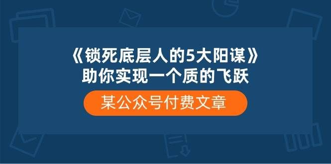 底层人想要翻身,比登天都难,原因就是,他们被下面这5大阳谋深深束缚住了,丝毫不得动弹。